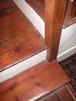 The staircase is original to the house. The cherry wood handrail is simple in design yet warm and elegant in texture. The stairs are remarkably solid--no creaking when one walks! The Society has a fine collection of quilts from the 18th and 19th centuries. Many came from area families. There are two furnished bedrooms at the top of the stairs opening off of the upstairs landing.